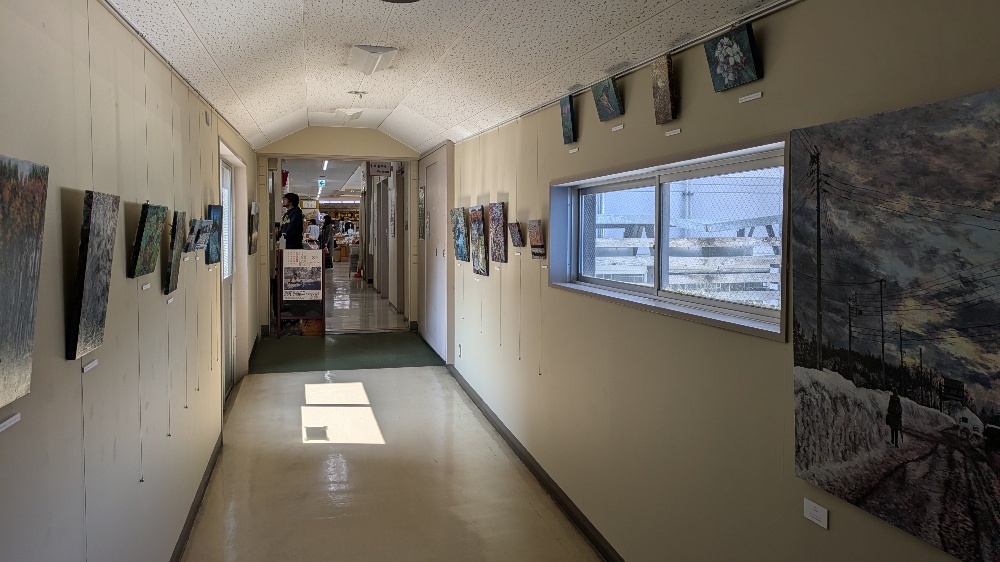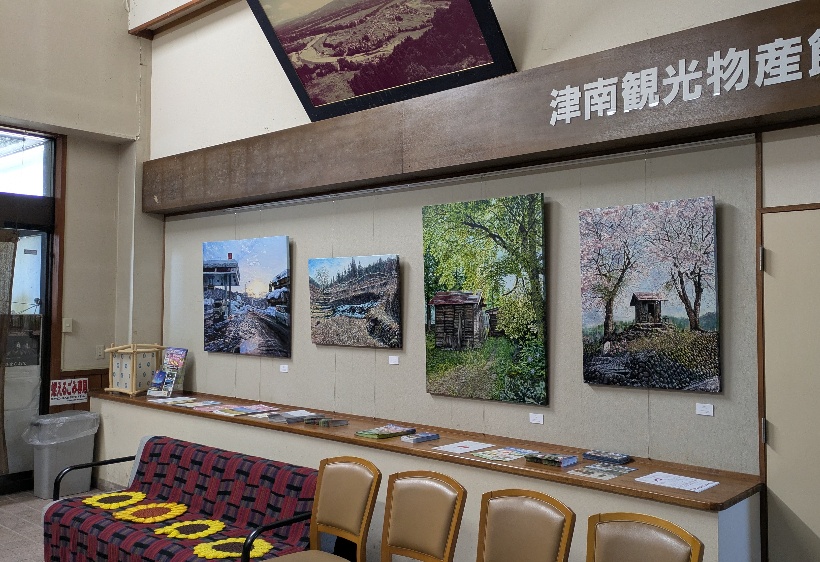 このたび津南観光物産館様からのご依頼で、物産館の店内と、とんかつつまり様への通路、待合場所に絵を展示させていただきました。